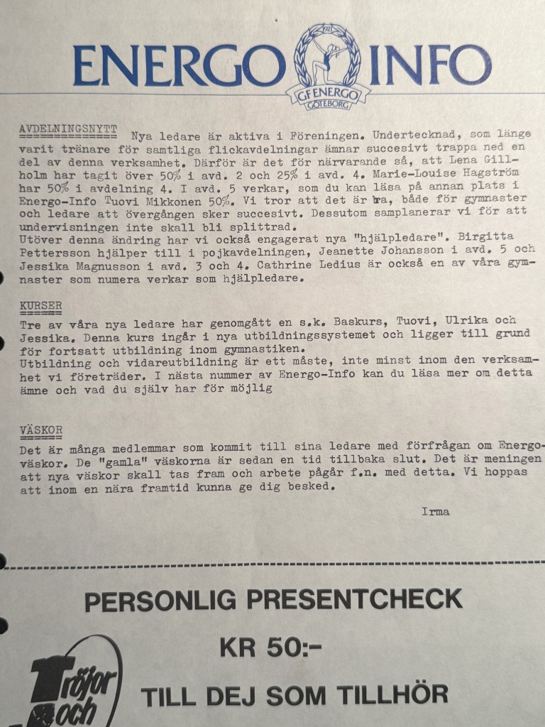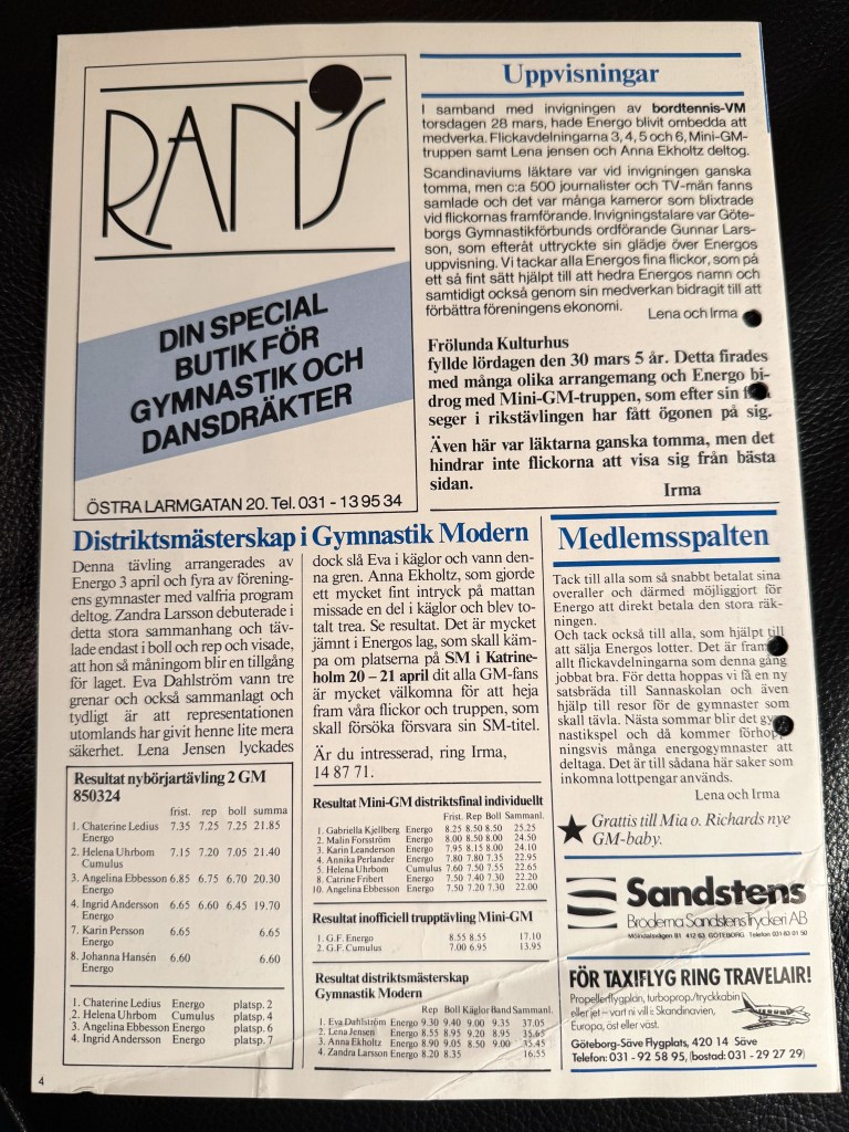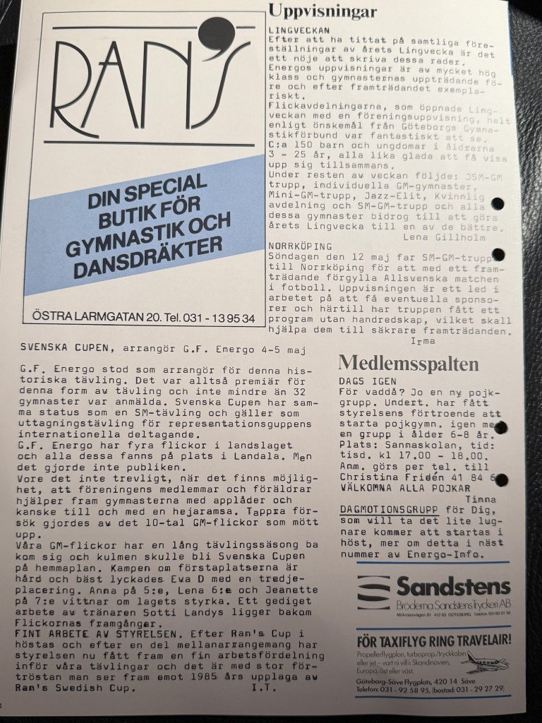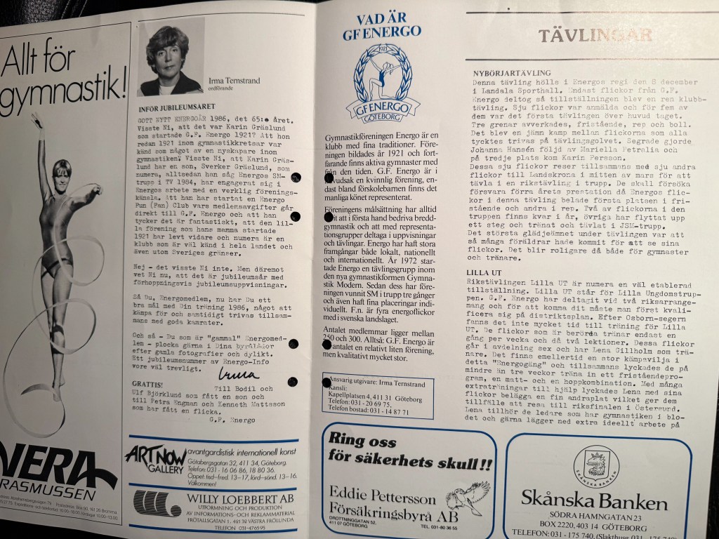 Året var 1986 och GF Energos trupp fick representera Sverige i EM i Florens, Italien. Därefter var truppen inbjuden till Monacos gymnastikförbund och Prinsessan Graces Cup.